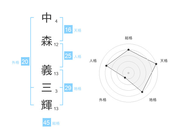 中森 義三輝さんを姓名の画数から五運を鑑定