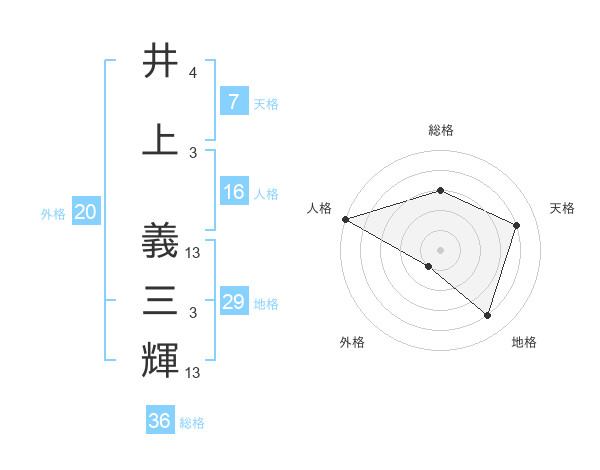 井上 義三輝さんを姓名の画数から五運を鑑定