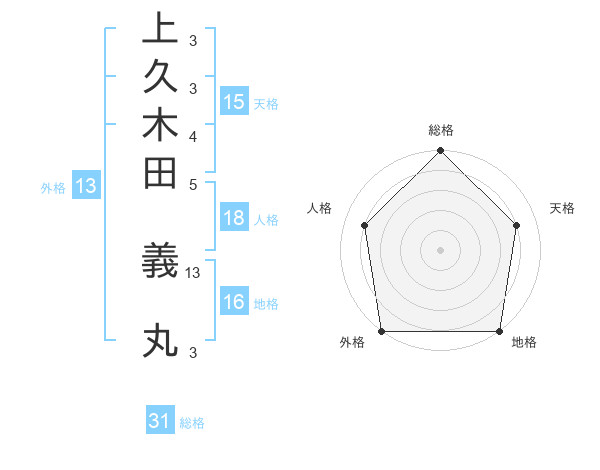 上久木田 義丸さんの外格は13画の5点!