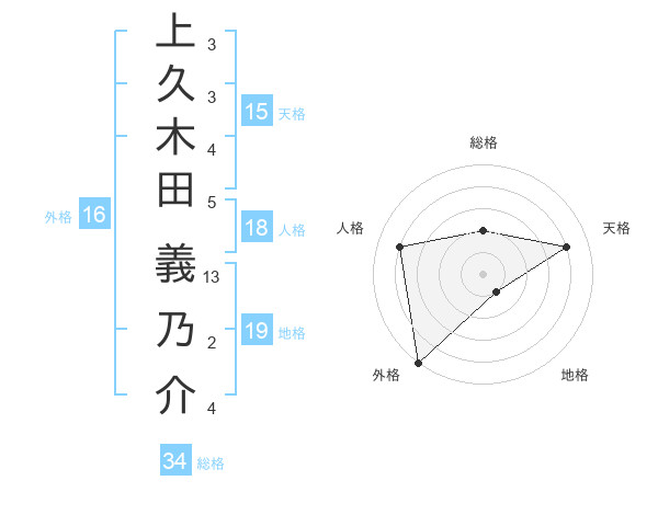 上久木田 義乃介さんを姓名の画数から五運を鑑定