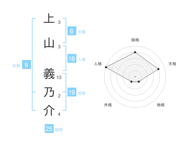 上山 義乃介さんの総格は25画の4点!