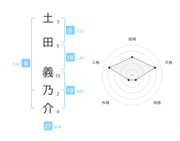 土田 義乃介さんを姓名の画数から五運を鑑定