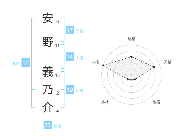 安野 義乃介さんを姓名の画数から五運を鑑定