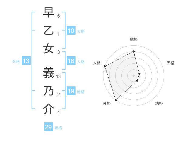 早乙女 義乃介さんを姓名の画数から五運を鑑定