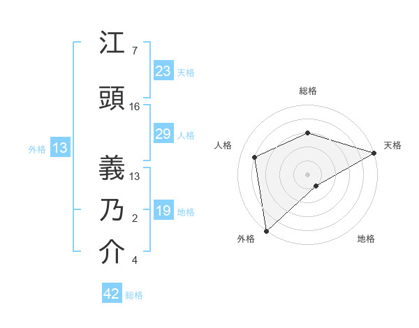 江頭 義乃介さんを姓名の画数から五運を鑑定