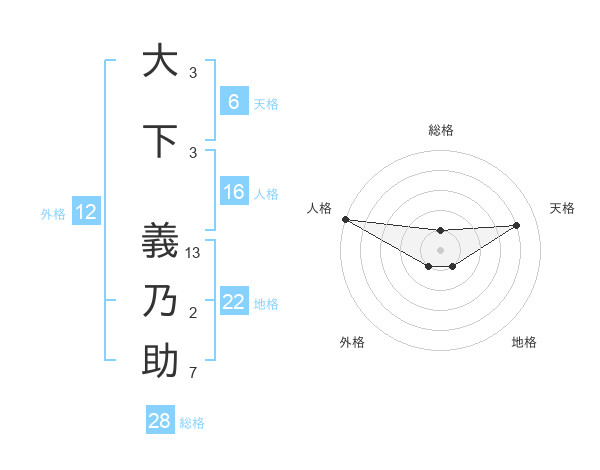 大下 義乃助さんを姓名の画数から五運を鑑定