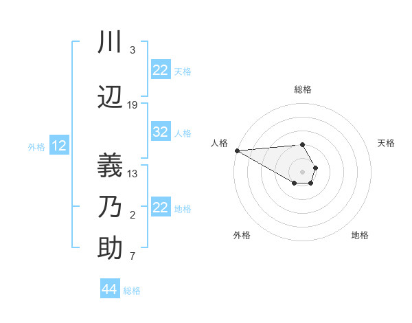 川辺 義乃助さんを姓名の画数から五運を鑑定