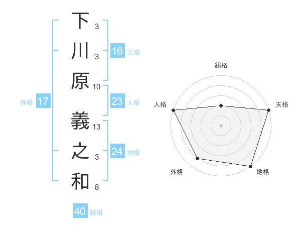下川原 義之和さんを姓名の画数から五運を鑑定