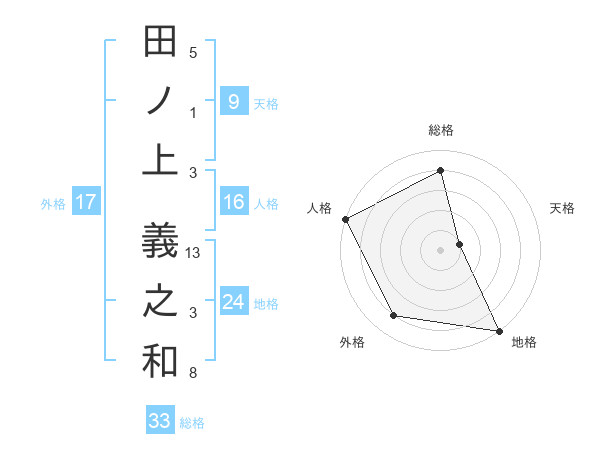 田ノ上 義之和さんの地格は24画の5点!