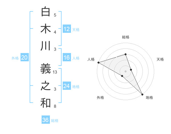 白木川 義之和さんの総格は36画の3点