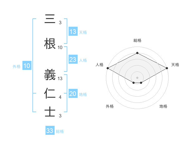 三根 義仁士さんの総格は33画の4点!