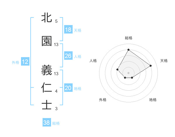 北園 義仁士さんの総格は38画の4点!