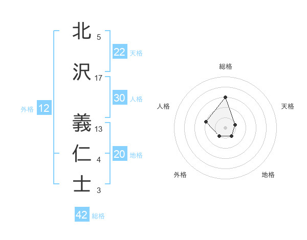北沢 義仁士さんを姓名の画数から五運を鑑定