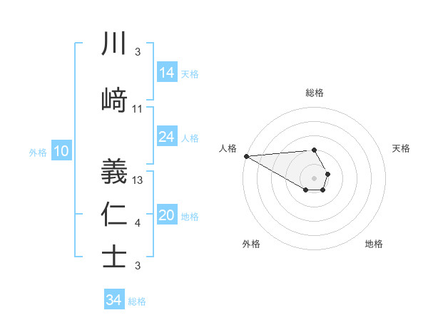 川﨑 義仁士さんの総格は34画の2点!