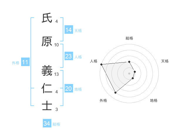 氏原 義仁士さんを姓名の画数から五運を鑑定
