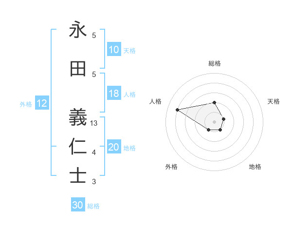 永田 義仁士さんを姓名の画数から五運を鑑定