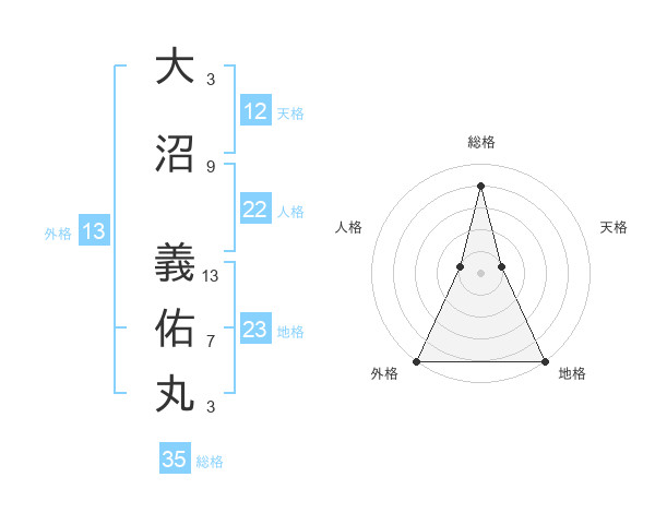 大沼 義佑丸さんを姓名の画数から五運を鑑定