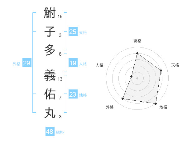 鮒子多 義佑丸さんを姓名の画数から五運を鑑定