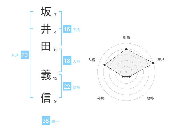 坂井田 義信さんの総格は38画の4点!