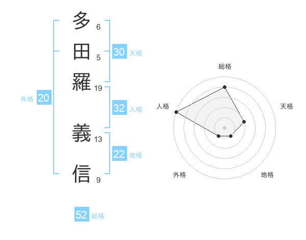 多田羅 義信さんの総格は52画の4点!