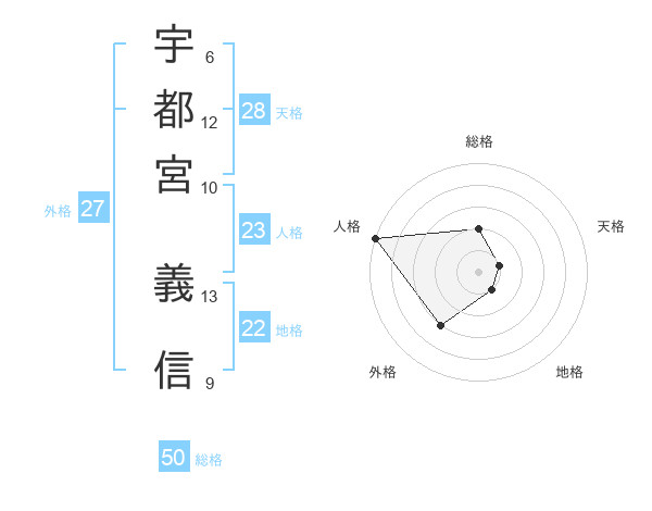 宇都宮 義信さんを姓名の画数から五運を鑑定