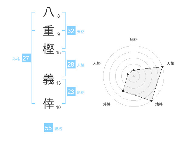 八重樫 義倖さんを姓名の画数から五運を鑑定