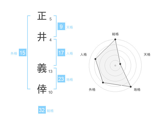 正井 義倖さんの総格は32画の5点!
