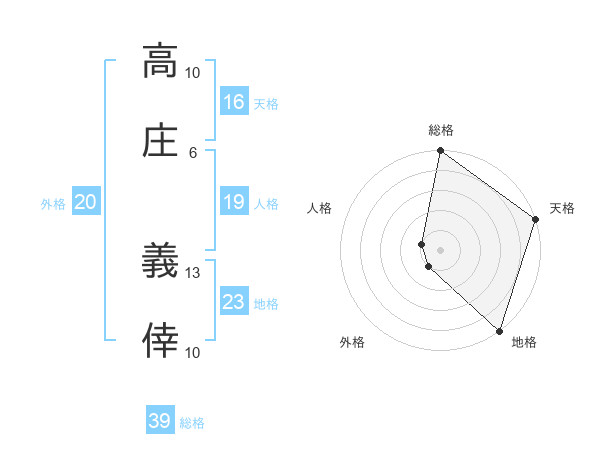 高庄 義倖さんの天格は16画の5点!
