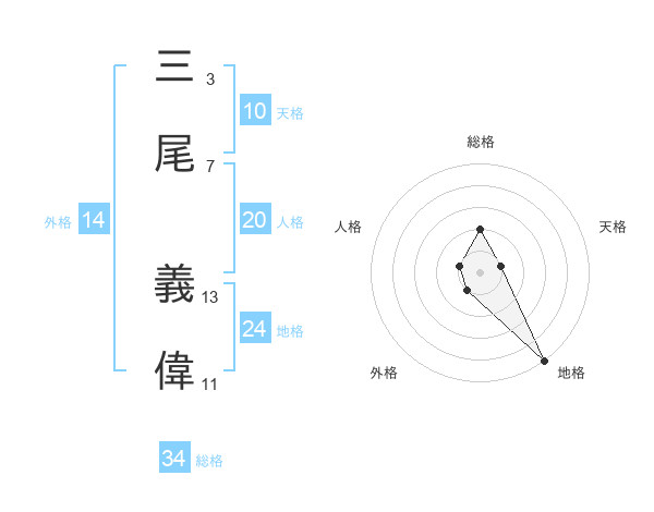 三尾 義偉さんを姓名の画数から五運を鑑定