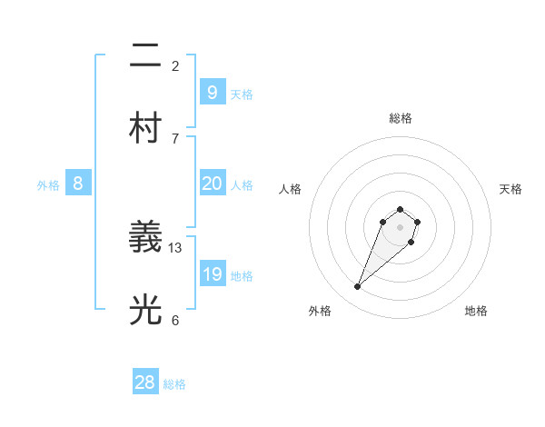 二村 義光さんの総格は28画の1点!