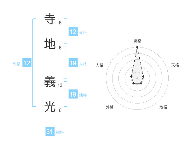 寺地 義光さんの総格は31画の5点!