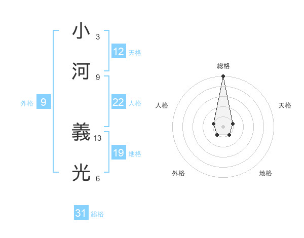 小河 義光さんの総格は31画の5点!