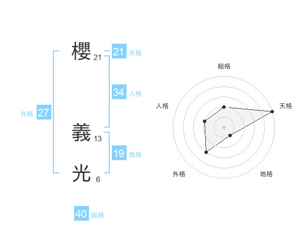 櫻 義光さんの天格は21画の5点!