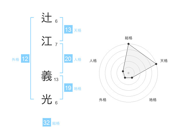 辻江 義光さんの天格は13画の5点!