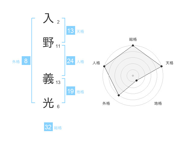 入野 義光さんの天格は13画の5点!
