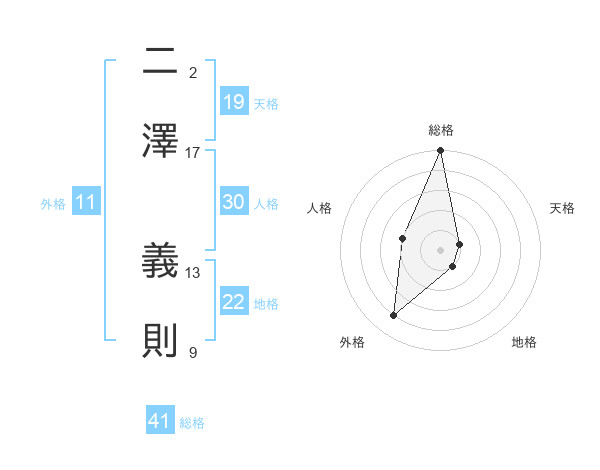 二澤 義則さんの天格は19画の1点!