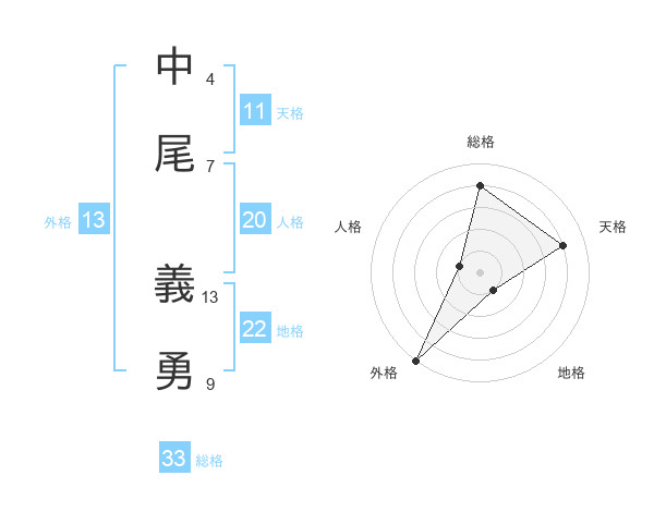 中尾 義勇さんの総格は33画の4点!