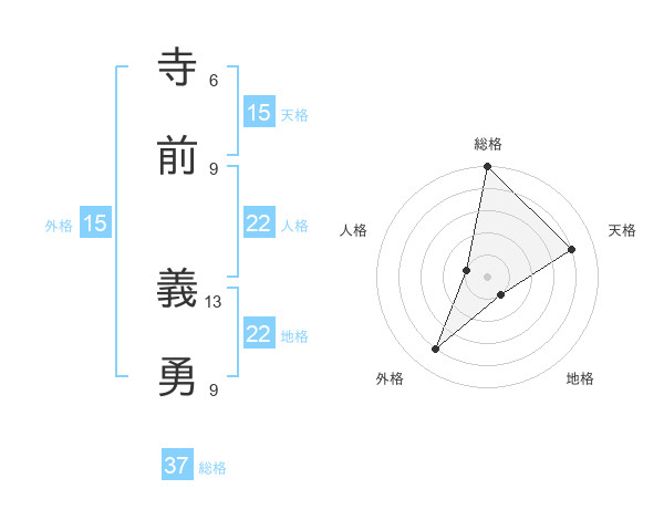 寺前 義勇さんの地格は22画の1点!