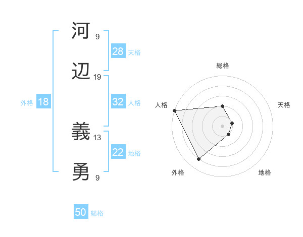 河辺 義勇さんの総格は50画の2点!