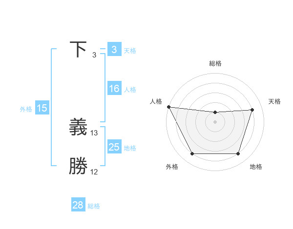 下 義勝さんの総格は28画の1点!