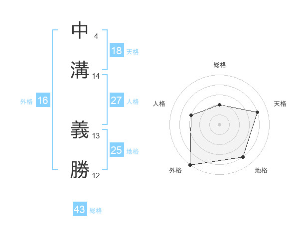 中溝 義勝さんの総格は43画の2点!