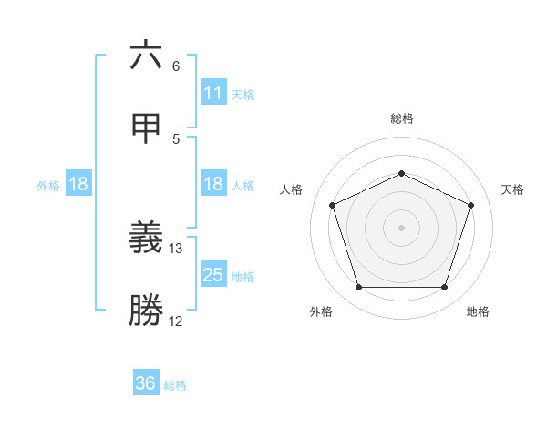 六甲 義勝さんの総格は36画の3点!