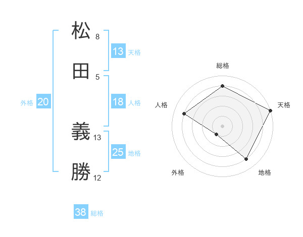 松田 義勝さんの総格は38画の4点!