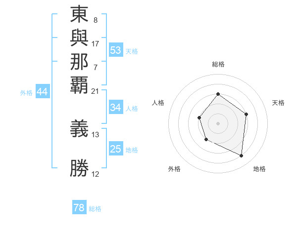 東與那覇 義勝さんを姓名の画数から五運を鑑定