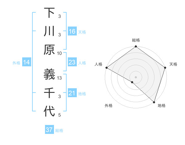 下川原 義千代さんを姓名の画数から五運を鑑定