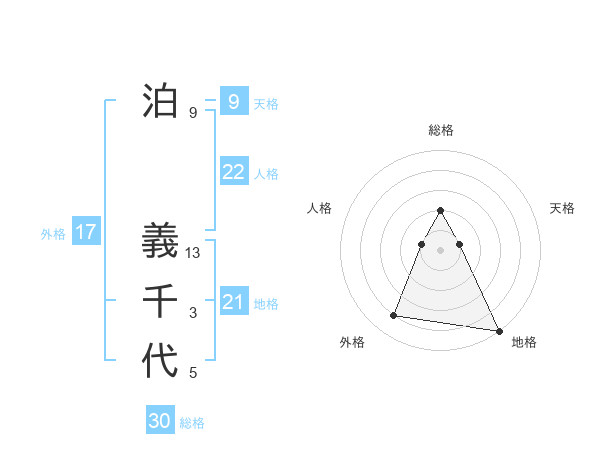 泊 義千代さんの総格は30画の2点