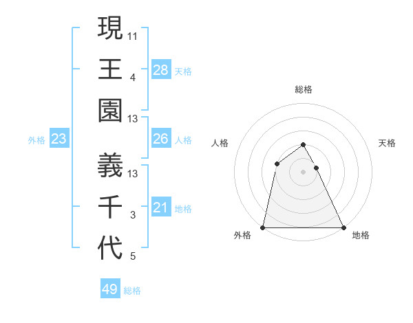 現王園 義千代さんの外格は23画の5点!