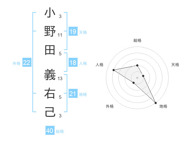 小野田 義右己さんの地格は21画の5点!