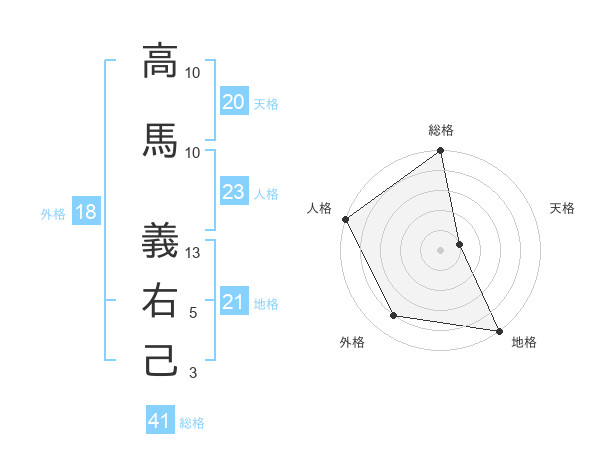 高馬 義右己さんを姓名の画数から五運を鑑定