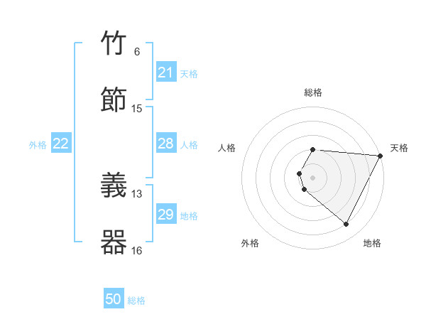 竹節 義器さんの総格は50画の2点!